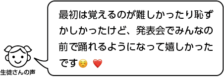 表現力や感性を豊かにしてあげたい、引っ込み思案を改善してあげたい、運動神経やリズム感をよくしたいという方是非お越しください。